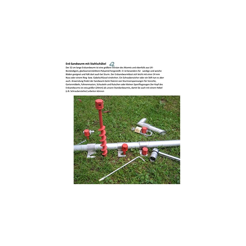 HOLLY WURMI STABIELO 2 Stück Bodenanker Sandwurm aus Polyamid, Bodenschrauber, mit hochwertigem 2x24mm Edelstahlschäkel, Überkopf aus Material V4A, rostfrei, seewasserfest, für WURMI Sand-Alu-Heringe