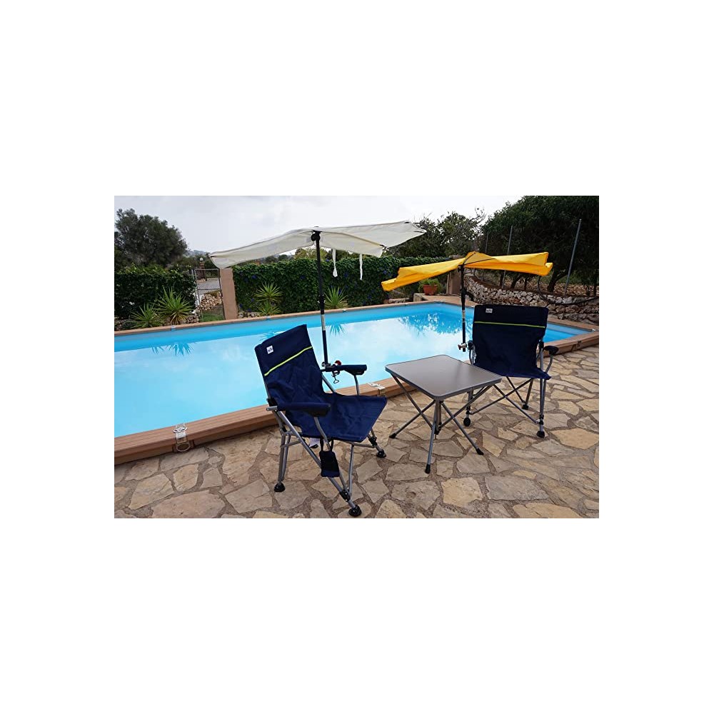 HOLLY-STABIELO-Reise-Freizeit-Set, 2 Faltstühle + Getränkehalter + Falttisch + Tragetasche, 13,3kg, Fächerschirm gelb, Duo-Halter. Die Versandkosten betragen inklusive Verpackung 9,90 EUR innerhalb von Deutschland. |