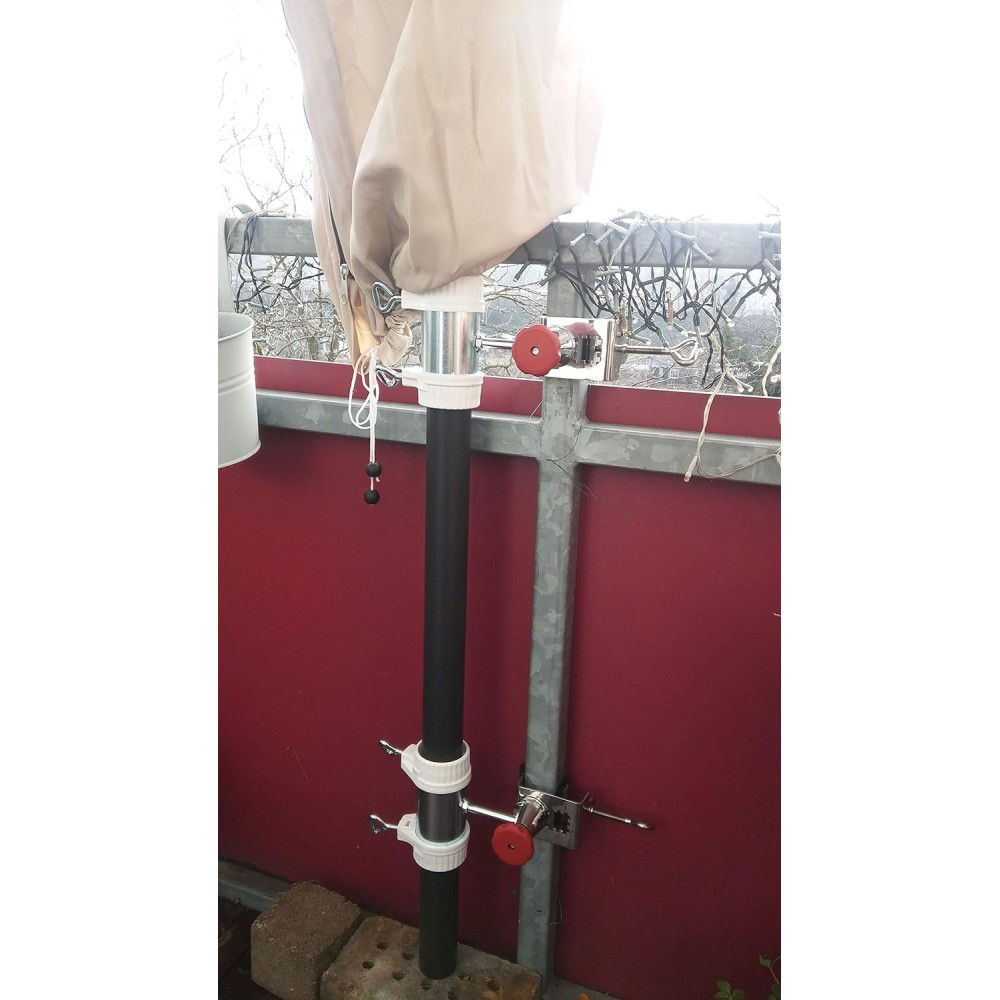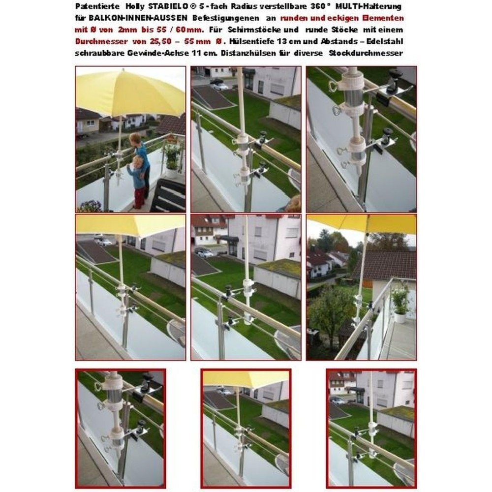 2fach Abstandshalter Schirmhalter Stockhalter Abstandsschirm - Stockhalter 25 - 50 mm Durchmesser für Geländer bis 65 mm Durchmesser Befestigung außen oder innen mit 11 cm Abstandshalter