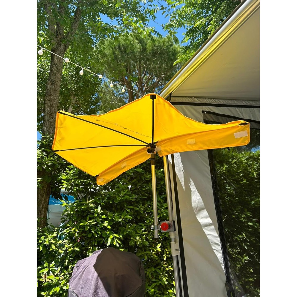 Die waagerechte-senkrechte oder schräge Befestigung sorgt dafür, dass z. B. Schirme geschwenkt und arretiert werden können