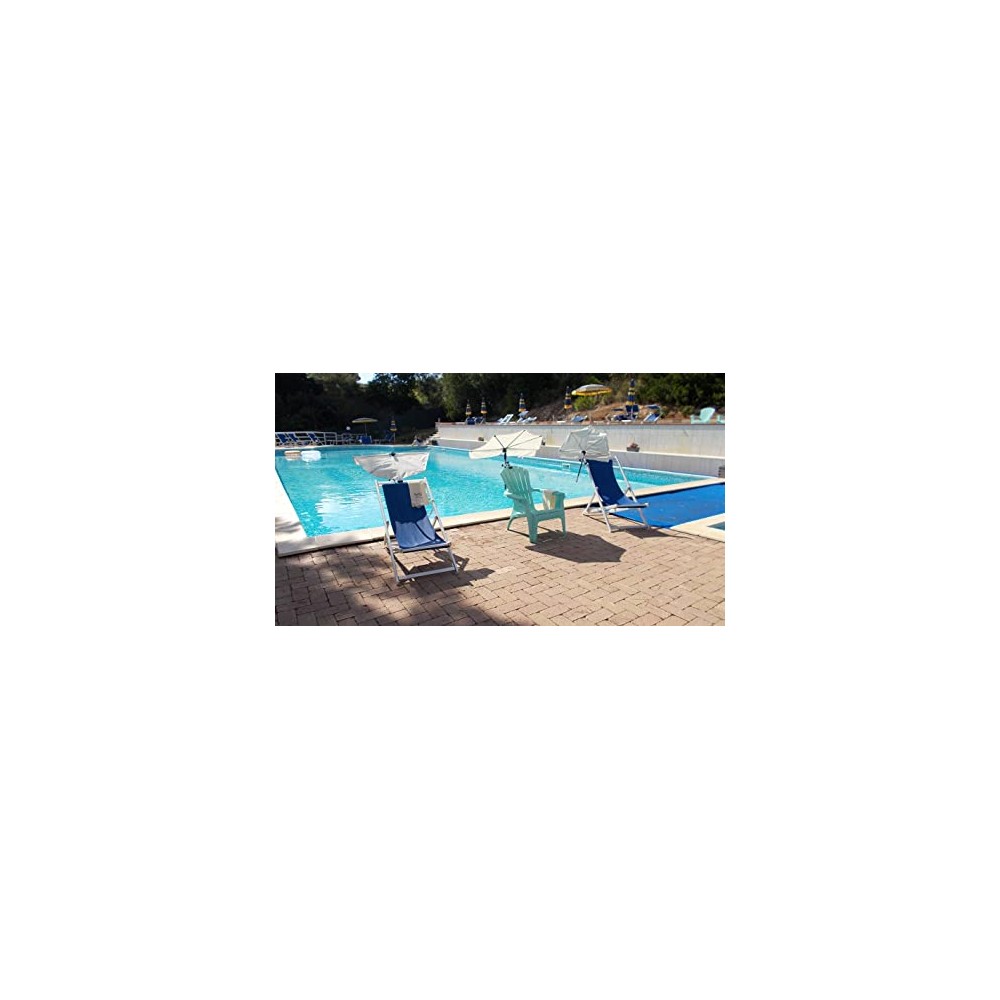 - Umbrella head adjustable from position 6.00 a.m. to 12.00 p.m. following the position of the sun by means of a step locking mechanism on the umbrella head