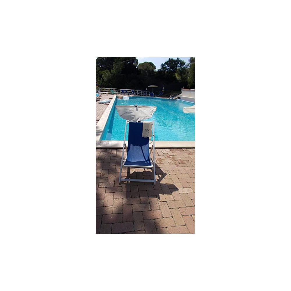 - Umbrella head adjustable from position 6.00 a.m. to 12.00 p.m. following the position of the sun by means of a step locking mechanism on the umbrella head