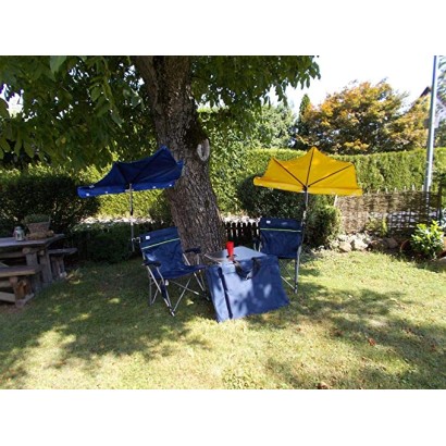 HOLLY-STABIELO travel leisure set, 2 folding chairs + cup holder + folding table + carrying bag, 13.3kg, fan umbrella yellow, duo holder. The shipping costs including packaging are 9.90 EUR. |