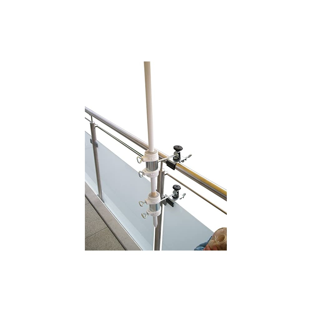 HOLLY parasol holder, multi-holder made of bright galvanized steel, spacer for balcony railings, vertical, oblique and horizontal mounting possible, for various applications, model Balcona-S (diameter 50mm).