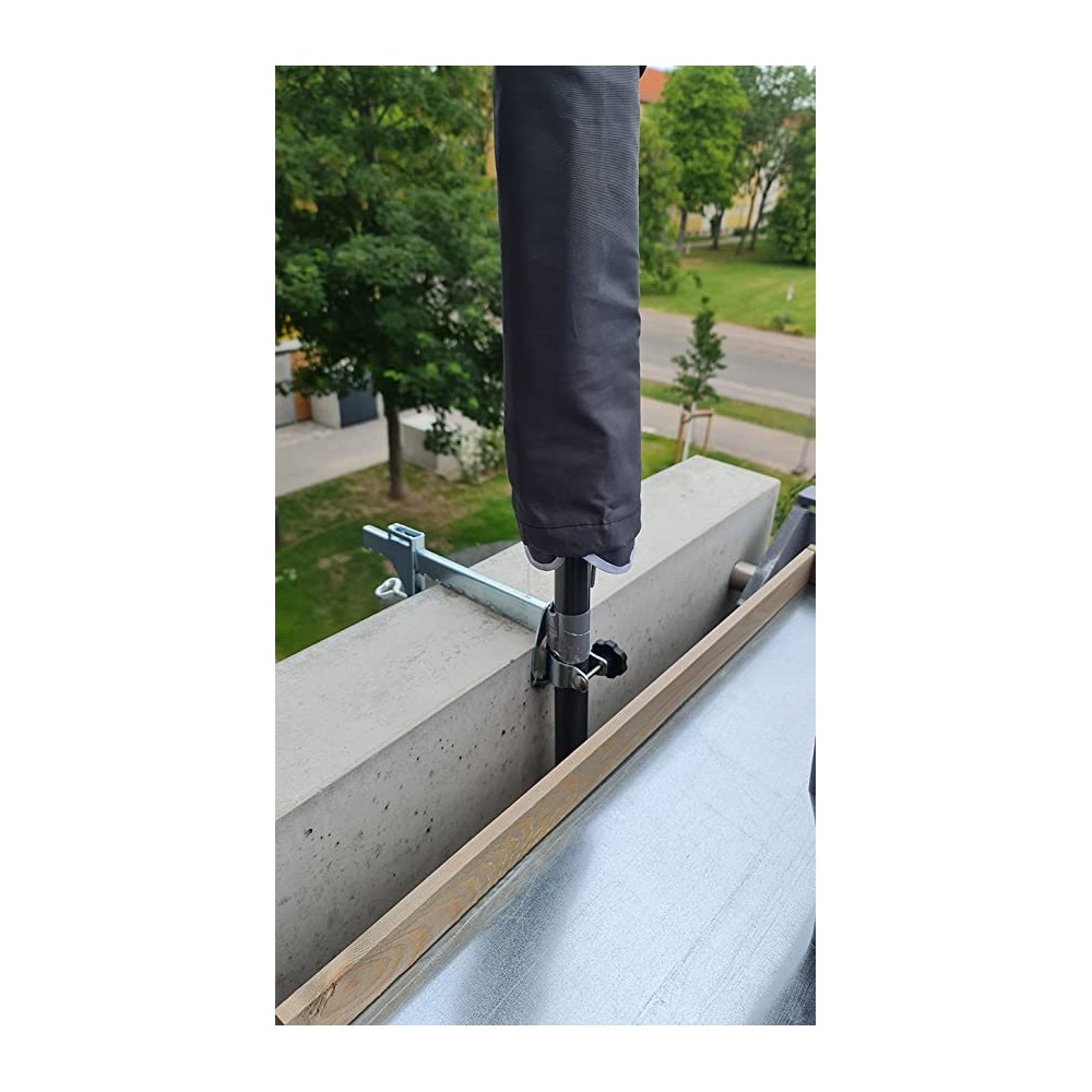 STABIELO-HOLLY rubberized parasol parapet holder, for umbrella poles with a diameter of up to a maximum of 38mm and with jaw opening for railings up to a maximum of 195mm.